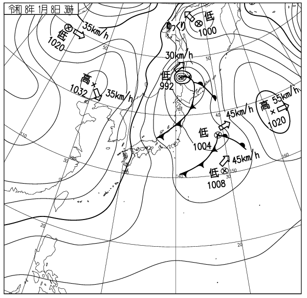 モイワ山麓-7度風やや強く降雪5cm視界良 モイワ800m-9.9度西北西9.0m4時20m/sふきだまり発達 アンヌプリ1100m-12度西5.5m ビレッジ1000m-10.8度西北西2.8m ヒラフ花園1000m-11.1度北2.6m降雪10cm 花園800m-9.1度東北東2.7m 日本海弁慶岬北西15m4時20m/s 神威岬西南西12m波高2.2m、